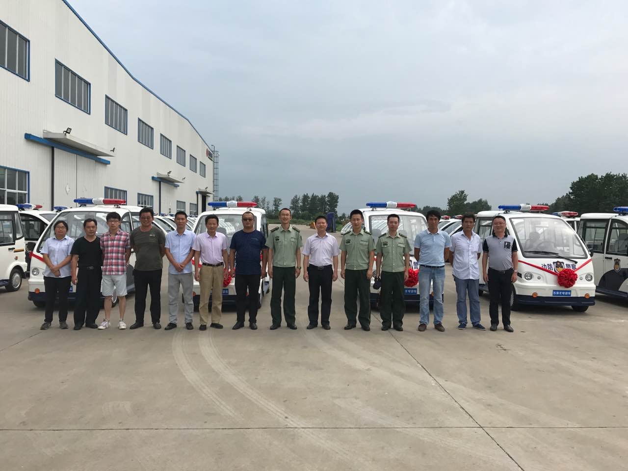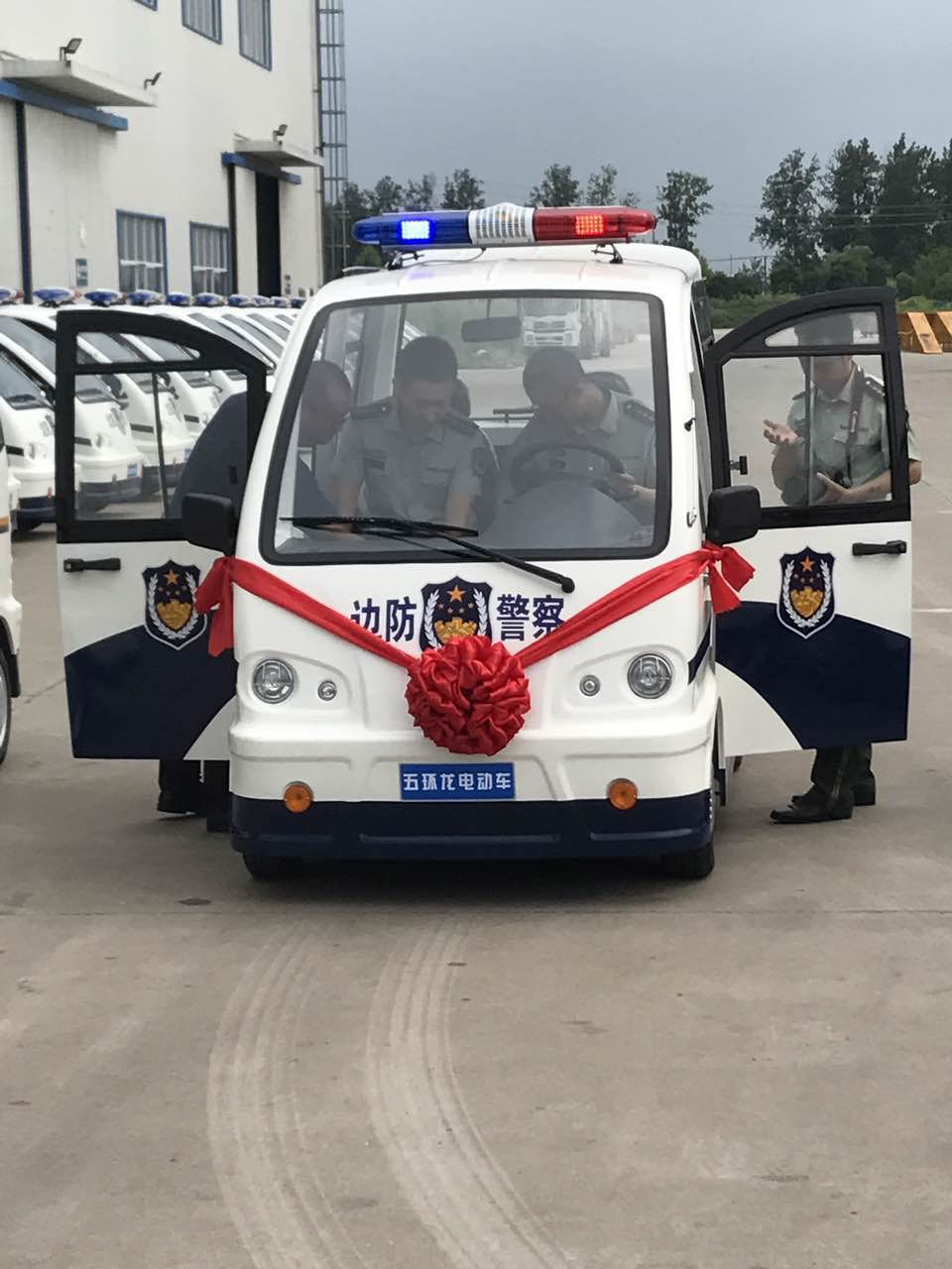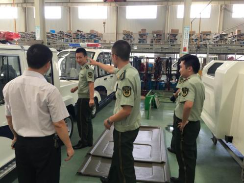 2017年8月25日是五環龍公司的好日子,這一天,江蘇公安邊防總隊領導要現場考察五環龍,對前期訂購的46輛電動巡邏車進行質量驗收,驗收合格后還將舉行正式交車儀式。